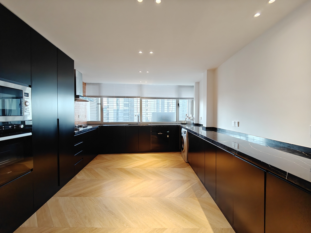 This apartment features open balcony, central A/C, wall heater and open kitchen with oven, dish washer, washing machine.