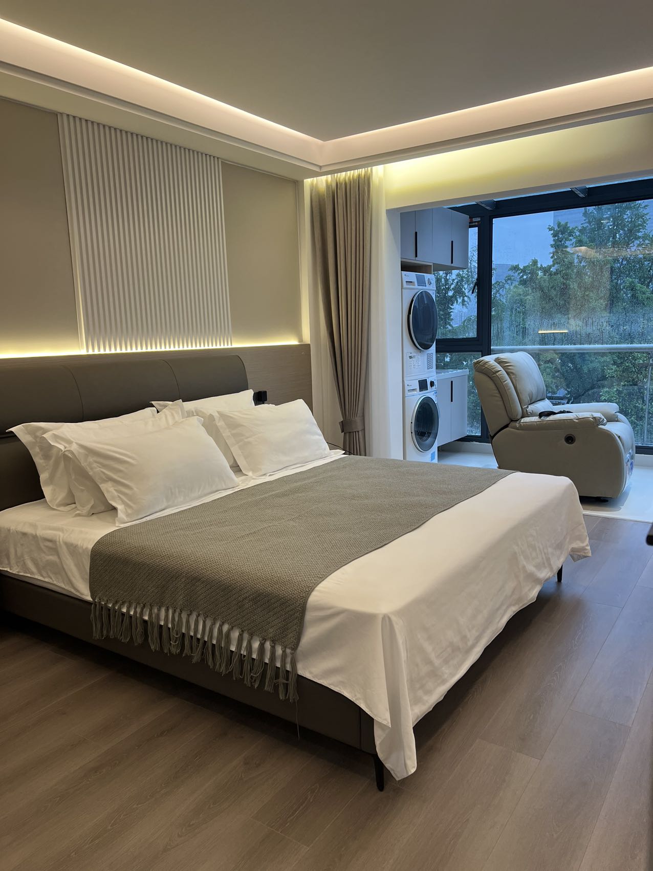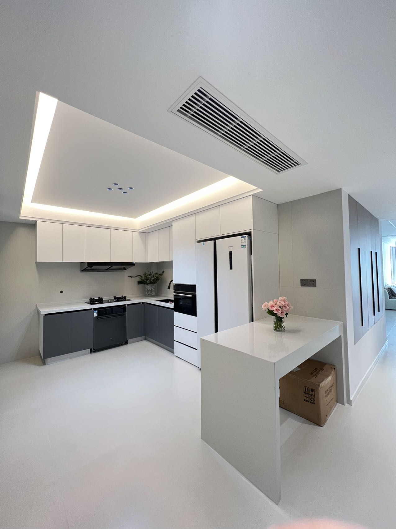 This apartment features balcony, floor heating, central A/C, washing machine and dryer and open kitchen with oven, dish washer.