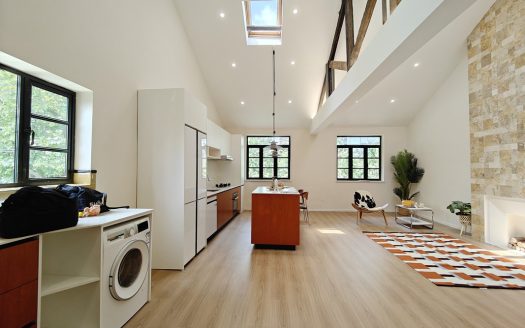 This apartment features balcony, floor heating, central A/C and open kitchen with oven, dish washer, washing machine.