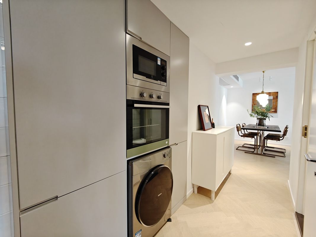 This apartment features balcony, floor heating, central A/C and open kitchen with oven, dish washer, washing machine with dryer.