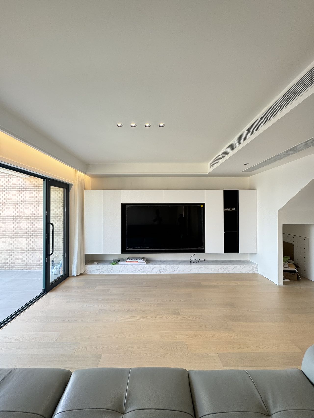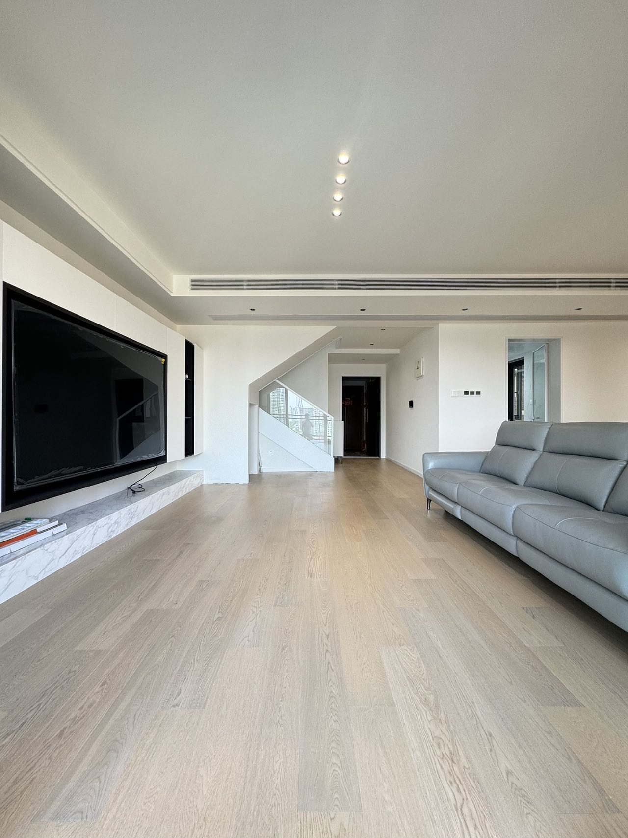 This duplex apartment features open balcony, floor heating, central A/C.