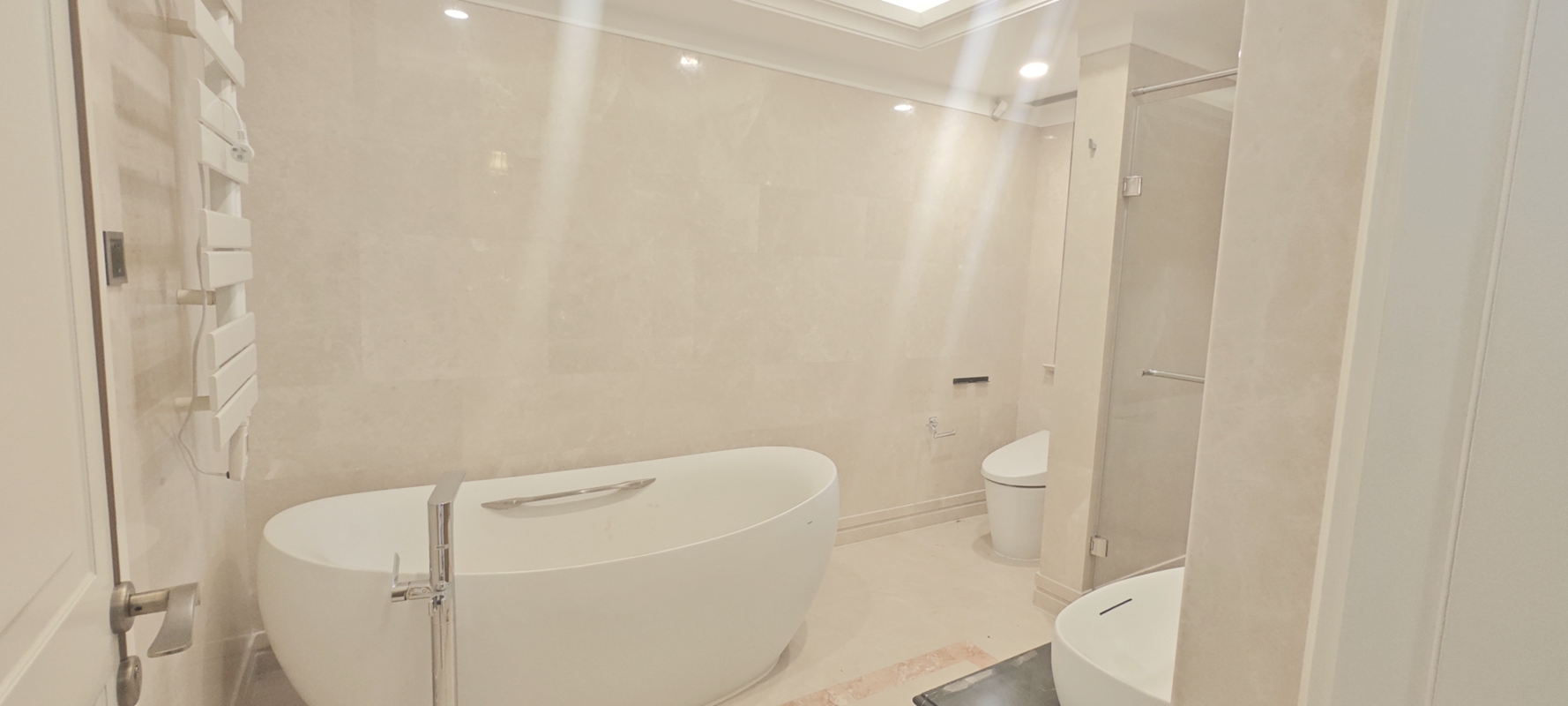 This penthouse apartment features open balcony, floor heating, central A/C and open kitchen with oven, dish washer.