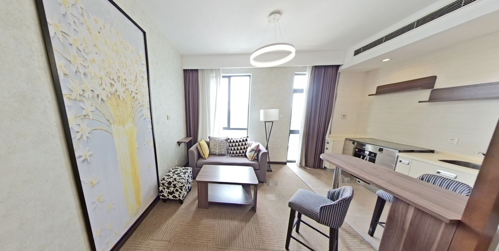This loft apartment features floor heating, central A/C and open kitchen.