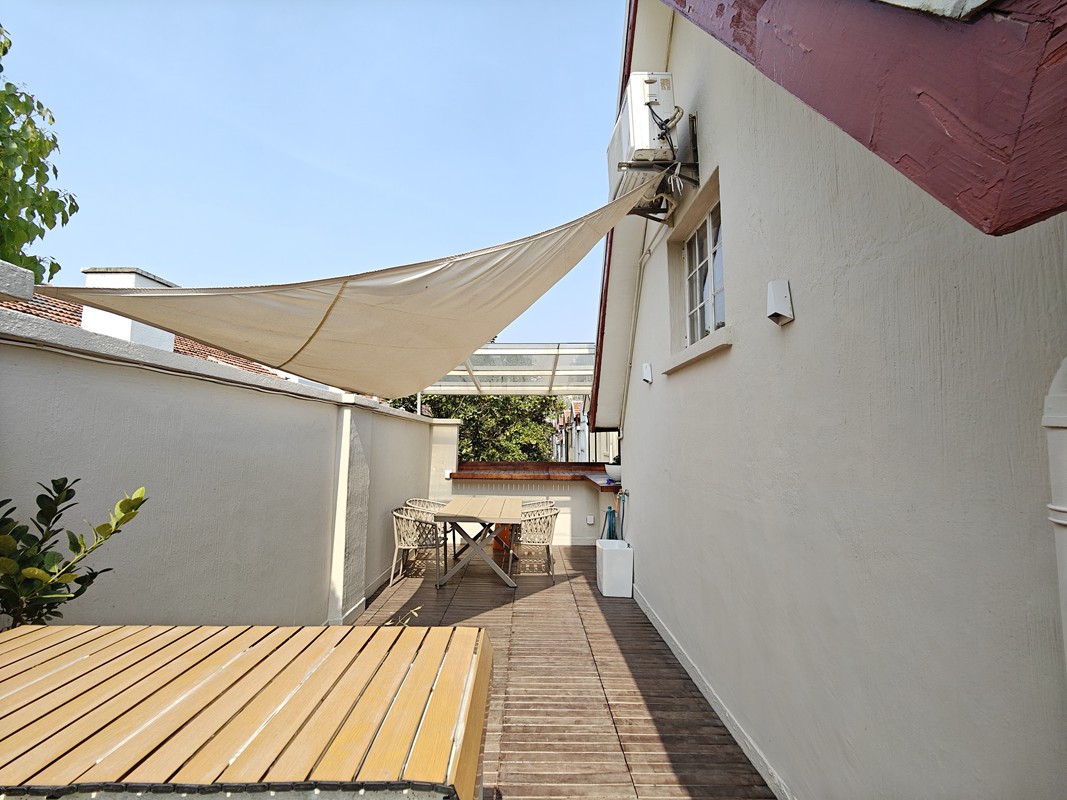 This duplex apartment features terrace, wall heater and open kitchen with oven, dish washer.